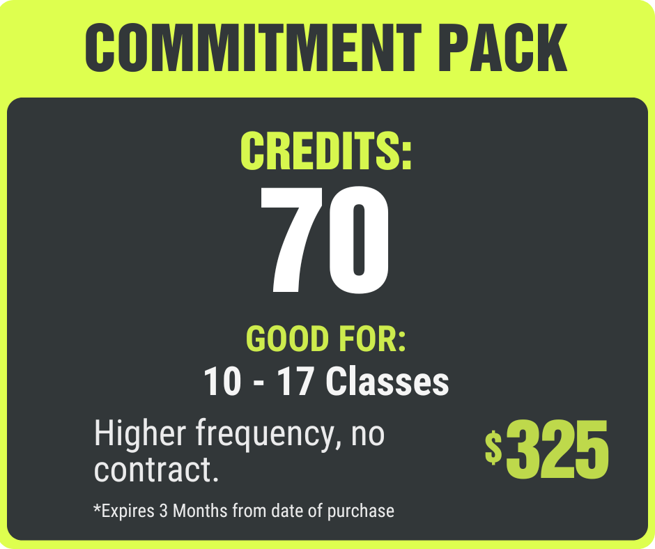 Not ready for a full membership? These flexible credit packs let you drop in when it fits your schedule. Classes range from 4 - 7 credits each.